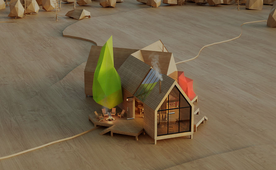El diseño se inspira en los gestos y movimientos de brazos de las posturas de yoga, generando una volumetría asimétrica que crea perspectivas dinámicas desde todos los ángulos del claro donde se alzará la casa. Esta forma escultural garantiza que la vivienda ofrezca vistas únicas desde todas las direcciones, en armonía con su entorno natural.